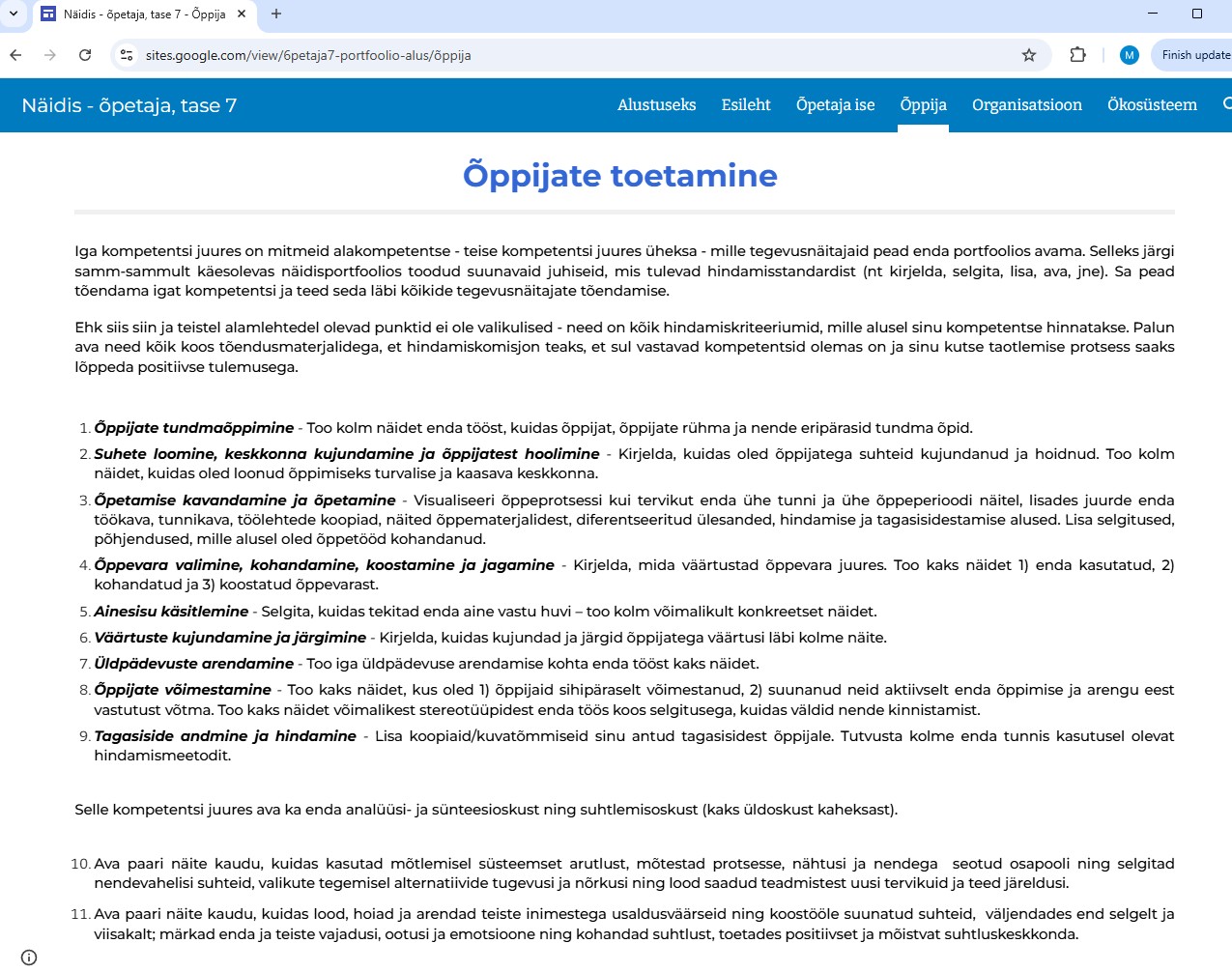 Siin veebilehel ongi siis toodud kõik minu väärtused / kompetentsid, kuidas ma suhestun õpetaja positsiooniga ning kuidas ma ennast näen kui mentorit / kaasaaitajat selleks, et luua keskkond õpilastele, kus nad saavad tegeleda teadmiste omandamisega. Olen struktureerinud selle lehe sarnaselt, nagu on toodud õpetajateliidu näidisportfooliolehes. Kuna ka kutsetaotluse lehel võivad materjalid ajas muutuda, siis tegin küsimustest ka kuvatõmmised Järgmistes lehtedes annan siis ülevaate oma õpetaja tööst ning loodame, et see portfoolioleht on edukas selleks, et saada õpetaja kutse.