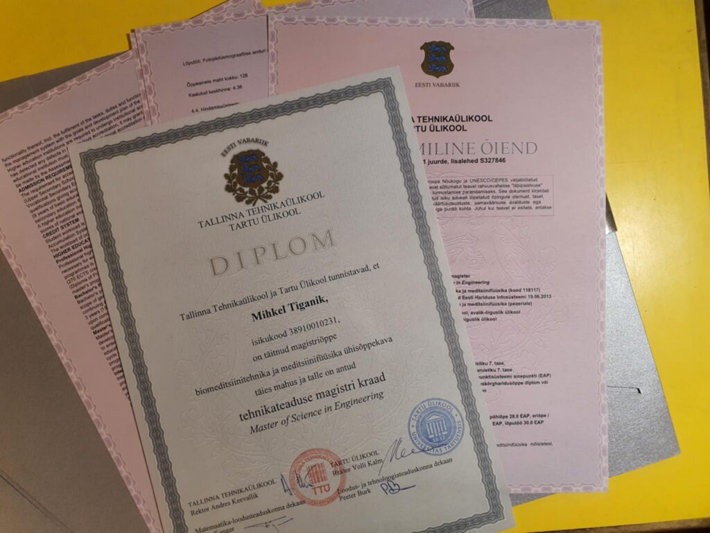 | 2015 | Magistrikraad erialal „Biomeditsiinitehnika ja meditsiinifüüsika“, TalTech |