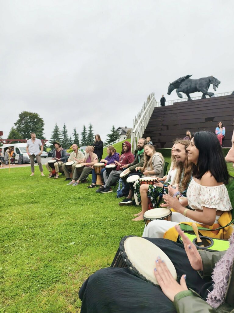 Trummimängimine koos oma kogukonnaga on hea viis läbi rütmide hoolitseda enda vaimse ja sotsiaalse heaolu eest. (Laitse Graniitvilla 2025)